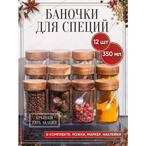 Баночки для специй и пряностей с ложками и наклейками стеклянные с деревянными крышками 12 шт: сравнение цен, характеристики, фото, актуальное наличие и цены.