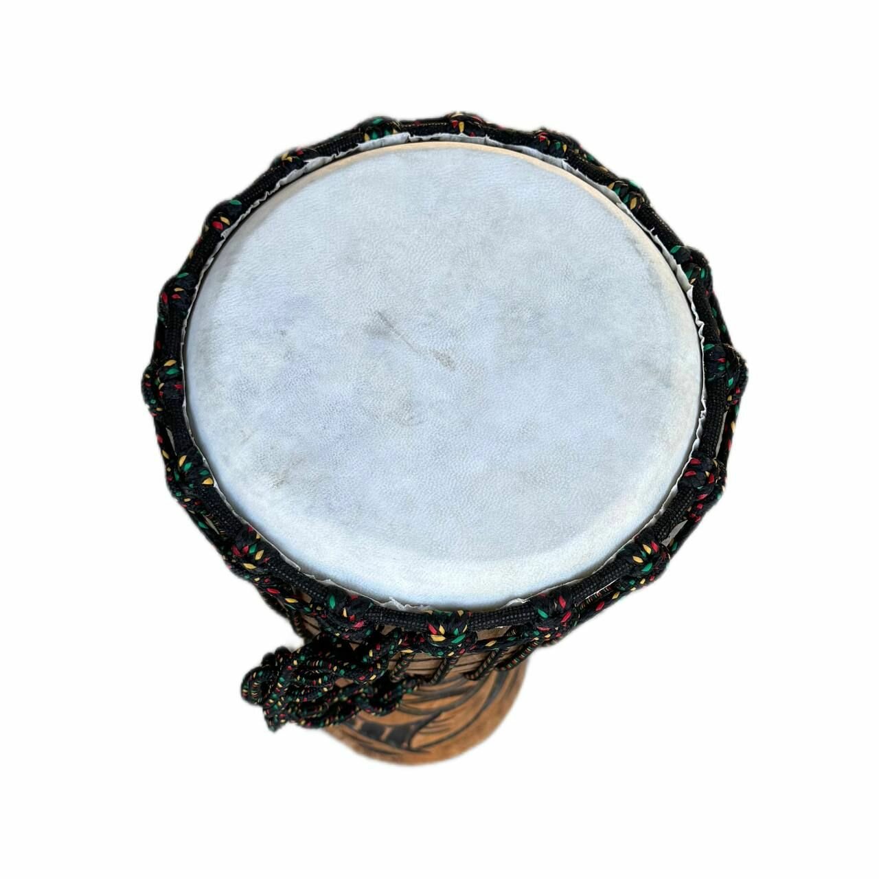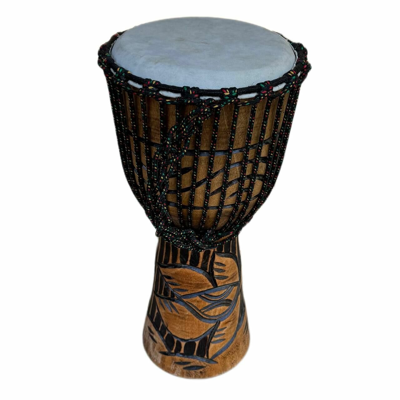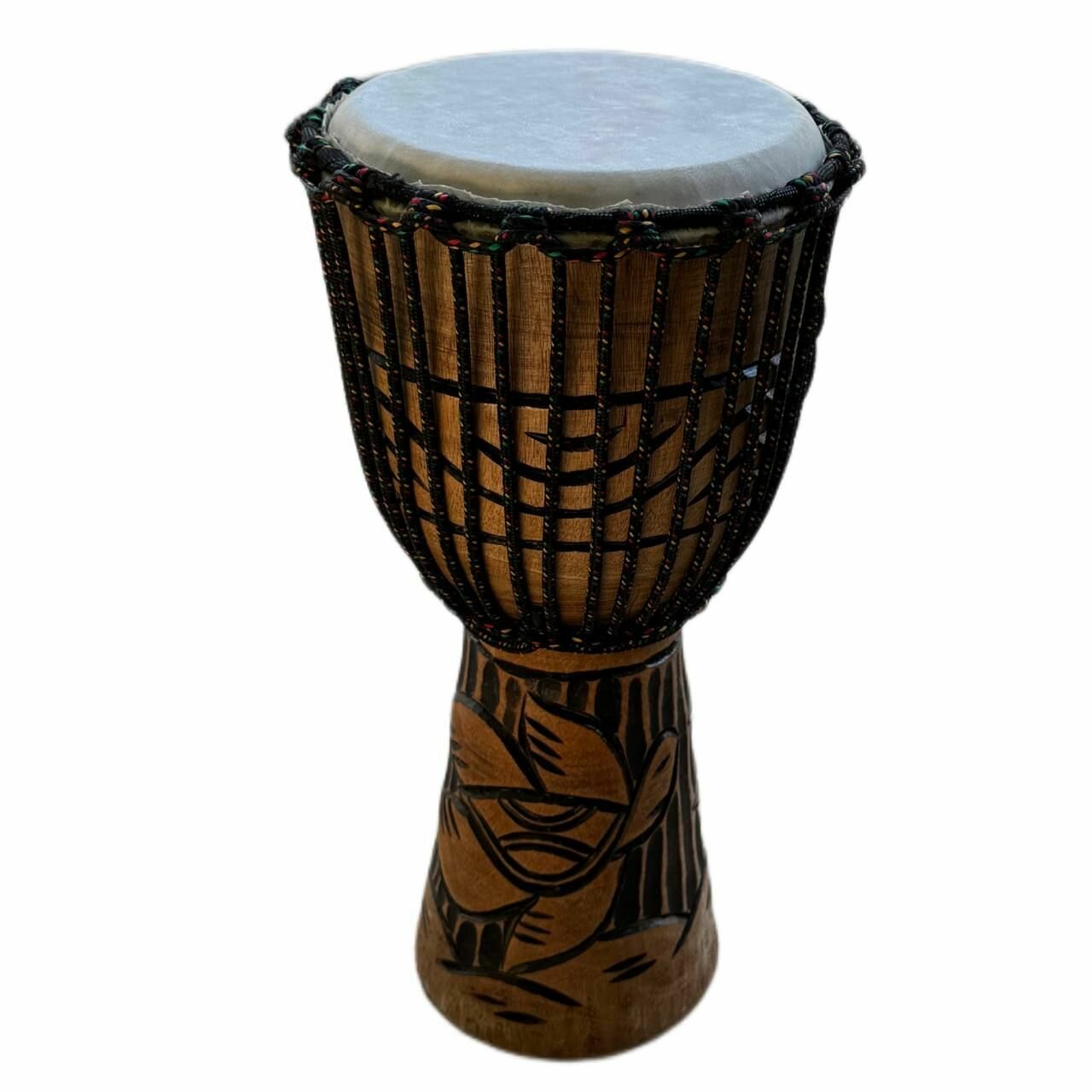 Барабан Джембе 40 см; Барабан деревянный, декоративный, украшенный вырезанным рисунком слона. Барабан деревянный из Индонезии. Барабан состоит из дерева и бамбука. Он изготовлен вручную, рисунок на каждом барабане индивидуален. Эта вещь может хорошо вписаться в ваш интерьер и добавить ему определенный колорит. Изделия изготовлены вручную, поэтому возможны небольшие отклонения от стандартных размеров и форм.