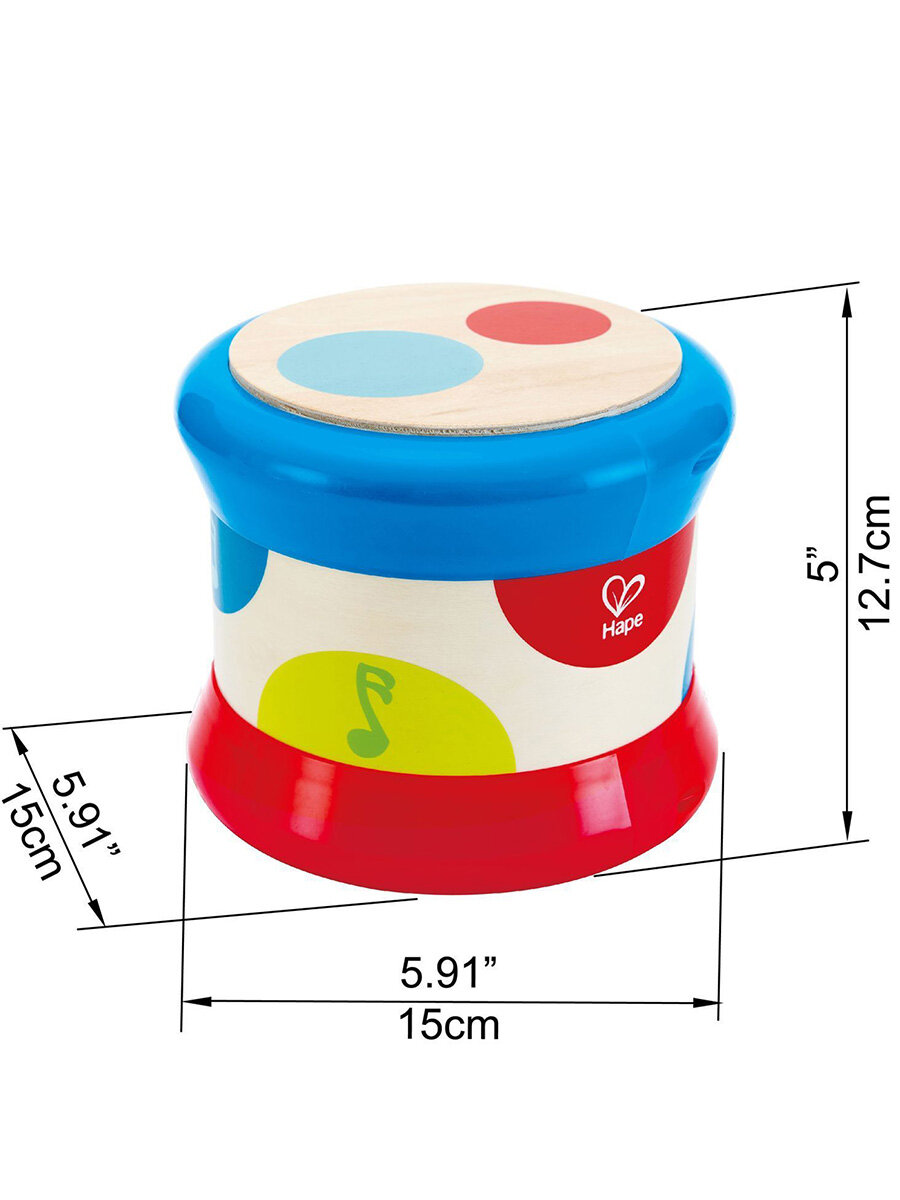 Hape Детский барабан Благодаря вращающемуся детскому барабану ребенок с самого раннего возраста прикоснется к миру музыки и ритма. Круглая форма игрушки позволяет катать его, стимулируя ребенка ползти за игрушкой. При вращении игрушка производит забавную барабанную мелодию и световое шоу. В вертикальном положении в Детский барабан можно бить, как в барабан, при этом каждый цветной кружок воспроизводит разные звуки барабана, при нажатии светится разноцветным светом. Характеристики: Яркий дизайн современный привлекает ребенка. Издаете различные звуки барабана (нужно перевести в режим музыки). Имеет световую подсветку. В вертикальном положении можно бить как в барабан. Каждый цветной кружок воспроизводит разные звуки барабана, при нажатии подсвечивается. Стимулирует ребенка изучать музыку и ритм, ползать и развивать навыки координации рук и глаз. Ребенок тренируется запоминать и издавать различные звуки. Имеет режим энергосбережения: автоматически запускается, если не активен более двух минут. Требуется три батарейки АА (не включены).