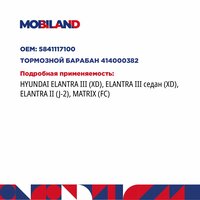 Барабан тормозной для а/м HYUNDAI ELANTRA III (XD), ELANTRA III седан (XD), MOBILAND 414000382: сравнение цен, характеристики, фото, актуальное наличие и цены.