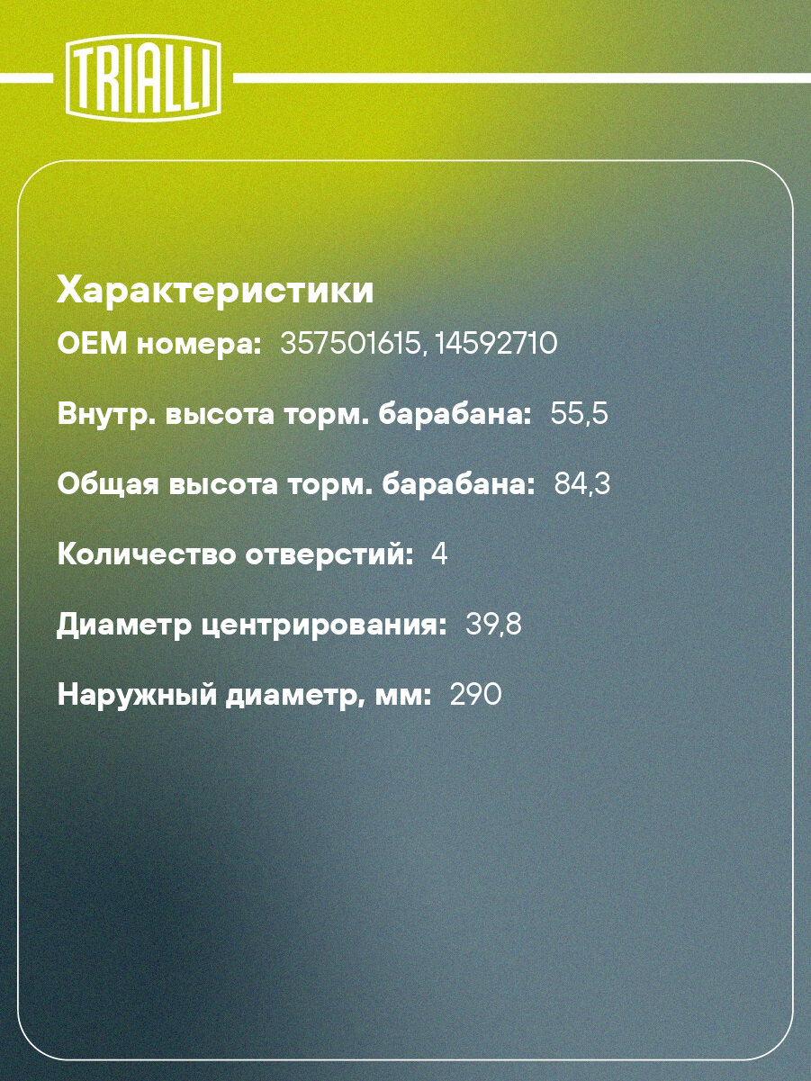 Барабан тормозной для автомобилей VW Passat B3/B4 (88-) d=290