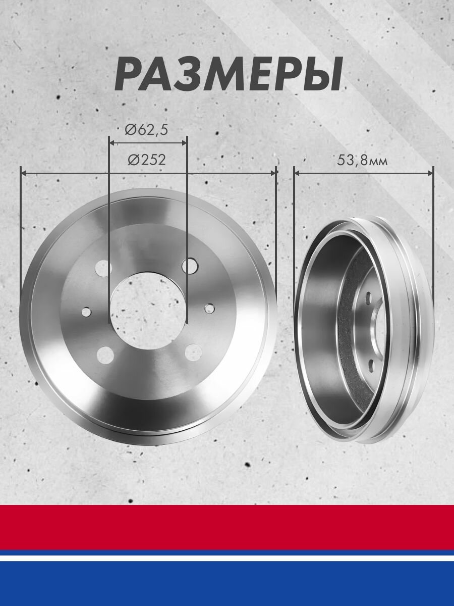 Тормозные барабаны АвтоРеал, Lada ВАЗ 2108, чугунный, комплект 2 шт