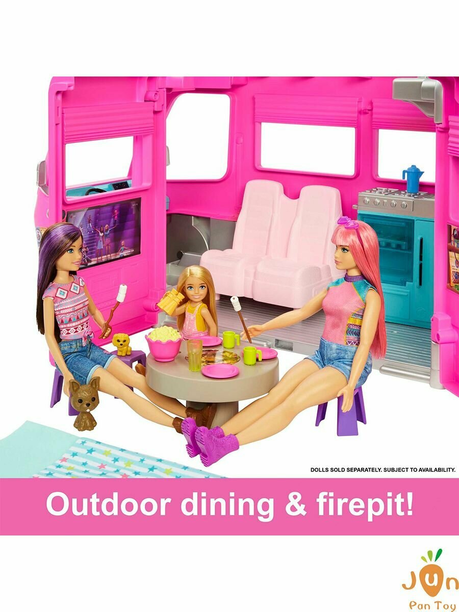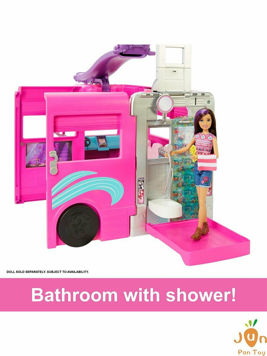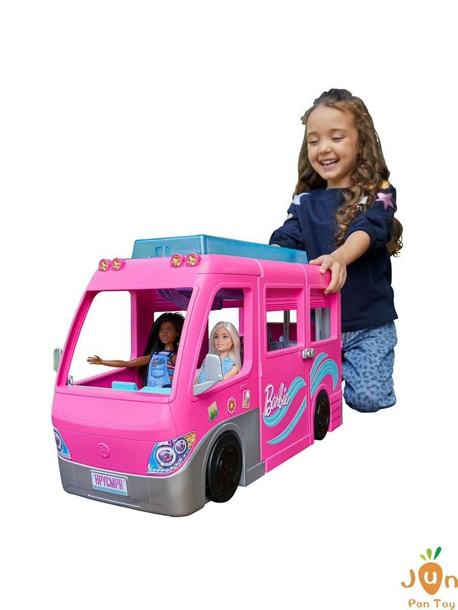 Игровой набор Barbie Кемпер мечты HCD46Отправляйтесь в поход вместе с Barbie DreamCamper Dream Camper! Вдохновите на бесконечные приключения на открытом воздухе с этим автомобилем Barbie® с семью игровыми площадками, эпической горкой и множеством аксессуаров. Благодаря вращающимся колесам и кабине для двух человек вы сможете добраться до любого пункта назначения своей мечты. Когда вы доберетесь до места назначения, припаркуйте свой кемпер и разверните его, чтобы открыть кухню, ванную комнату, бассейн, горку и гостиную с телевизором, создав столовую и спальню на открытом воздухе. Помогите Барби® и ее друзьям (куклы не входят в комплект) подняться по лестнице, а затем скатиться с горки в бассейн с большим всплеском! Персонализируйте свой автомобиль Barbie® с помощью листа наклеек на бампер с тематикой кемпинга и откройте для себя бесконечное веселье с более чем 60 элементами, включая две фигурки щенков! Когда куклы будут готовы к вашему следующему приключению, упакуйте все в кемпер и заприте его, чтобы продолжить свое путешествие. Отправляйтесь в приключение Barbie® Dreamcamper Camper of Dreams с горкой, 7 игровыми площадками и всем необходимым, чтобы сделать ваше путешествие незабываемым! Вращающиеся колеса и двухместная кабина вдохновляют на увлекательное путешествие — загружайте багаж и отправляйтесь в путь. Когда вы доберетесь до места назначения, припаркуйте свой кемпер и разверните его, чтобы открыть кухню, ванную комнату, бассейн, горку и гостиную с телевизором, создав столовую и спальню на открытом воздухе. Помогите куклам подняться по лестнице, а затем скатитесь с горки к бассейну. Расскажите удивительные истории кемпинга с более чем 60 аксессуарами, включая лист с наклейками для персонализации вашего автомобиля, 2 фигурки щенков, мебель, кухонную утварь и мягкие одеяла. Благодаря трансформациям и веселью этот кемпер Barbie® Dreamcamper станет отличным подарком для маленьких искателей приключений. Горка длиной 76 см с бассейном. Размеры упаковки: 60 х 32,5 х 23 см. В комплект не входит кукла. Цвета и украшения могут отличаться.