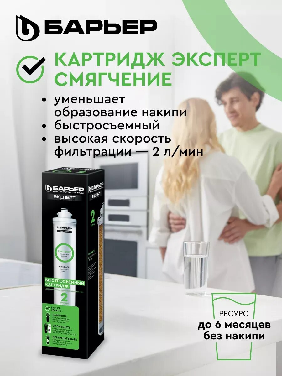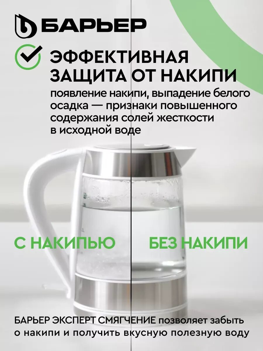 БАРЬЕР эксперт Смягчение подходит для жесткой воды и обеспечивает умягчение, что делает воду более приятной на вкус и безопасной для здоровья.