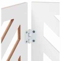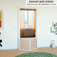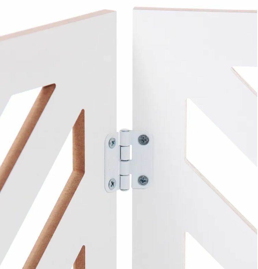 Элегантная ширма для интерьера, идеально подходит для ограничения свободного перемещения мелких собак и кошек. Изготовлена из прочного ламинированного МДФ в цвете белый, с песочными акцентами, которые видны на торцах и внутри резьбы.