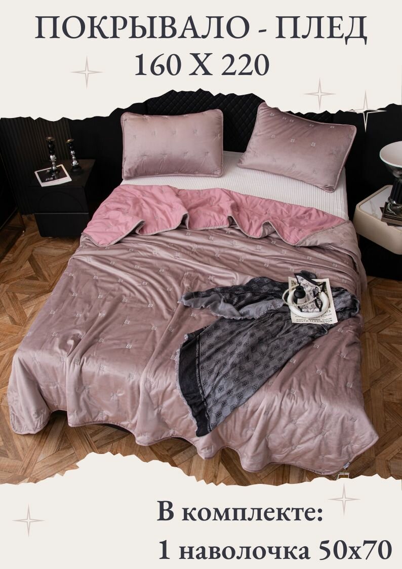 Покрывало на кровать, диван 160х220 комплект с наволочкой 50х70 Бархат-Велюр