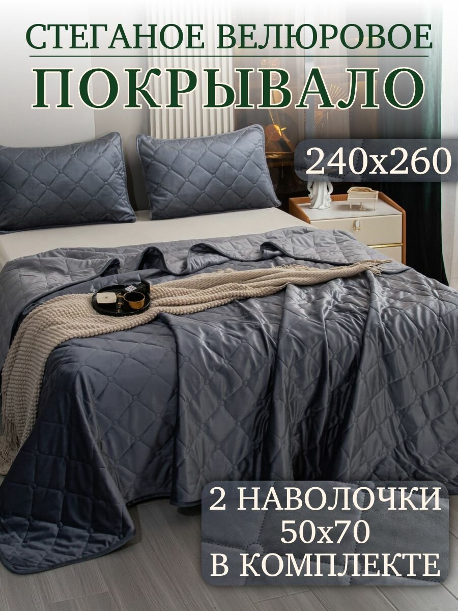 Покрывало на кровать, диван 240х260 комплект с наволочками 50х70 Бархат-Велюр