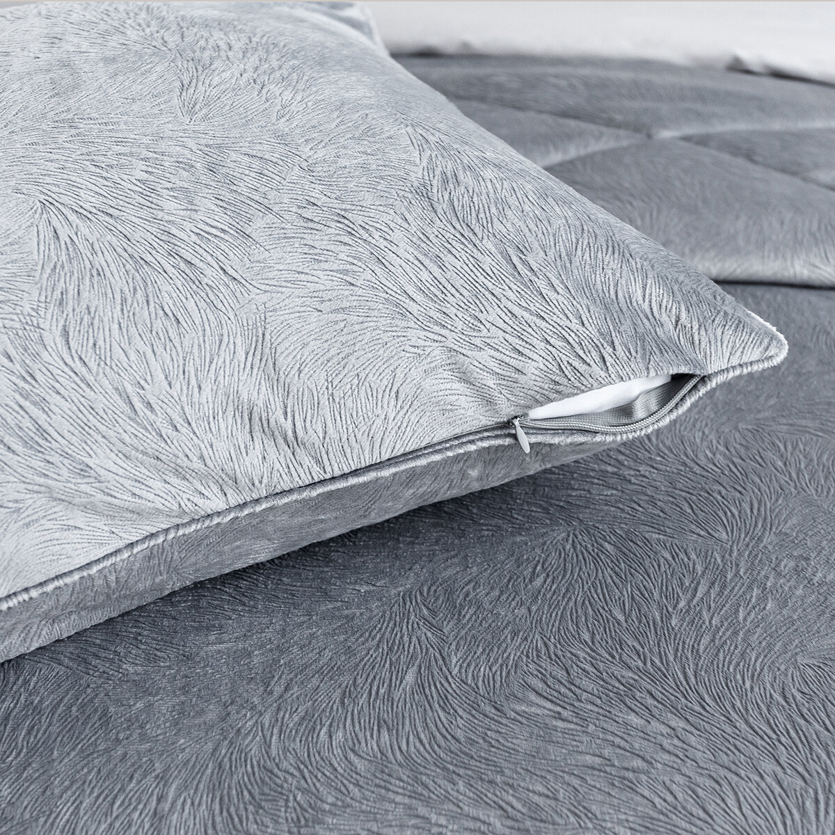 Эффектная бархатная фактура с тисненным принтом – один из трендов в оформлении интерьера в 2025 году. Коллекция Allure – это настоящее произведение искусства, которое поможет создать уютную и стильную атмосферу в интерьере и придаст любому помещению изысканность и шарм. Глубокий объемный дизайн придает ткани роскошный эксклюзивный вид, придает ему статусность, индивидуальность. В комплект входит: покрывало стеганое на подкладе 240х260см и декоративные наволочки на молнии 45х45см Состав: бархат – 100% ПЭ Подклад: микрофибра велюр, за счет своей фактуры он предотвращает скольжение покрывала на кровати Стальной – это выбор современных и сдержанных решений. Элегантная палитра серого цвета с металлическими нотками подчеркнет стиль минимализма и хай-тек. Универсальный дизайн позволяет легко сочетать его с любыми акцентами в интерьере. Обращаем внимание! Цвета изделий на сайте могут незначительно отличаться от реальных из-за особенностей цветопередачи монитора. Размер: 240 х 260 см, Размер: 240 х 260 см, Материал: Бархат- 100% ПЭ, Наполнитель: Полиэфирное волокно, Наволочки: 45 x 45 см - 2 шт, Цвет: Серый, Детали: Тисненый бархат, наволочки на молнии
