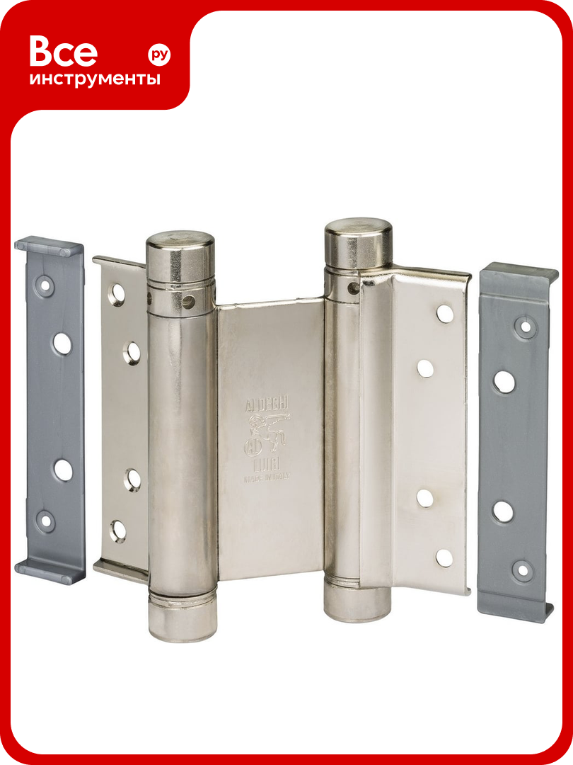 Барная пружинная петля двойного действия ALDEGHI LUIGI SPA 100х37х33 мм, цвет: никель, к-т: 2 шт + ключ с декоративными шурупами 101AN100B2: сравнение цен, характеристики, фото, актуальное наличие и цены.