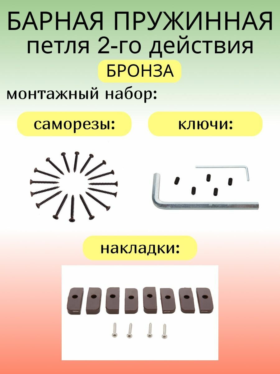 Изготовлена из высококачественной стали с гальваническим покрытием. Минимальная толщина в закрытом состоянии - до 6.9 мм. Простота регулировки пружины из нержавеющей стали. Подходит для любого типа дверей (материал, вес, размер). Установка петли возможна как с врезкой, так и без врезки. Холодная штамповка является гарантией прочности. Полимерные подшипники не требуют смазки. Эргономичность, а также высокая пропускная способность дверей. Удобство открывания двери (корпусом тела) при занятых руках. Предотвращение тепловых потерь в помещении через дверь. Возможность беспрепятственного прохождения большого числа людей. Исключение образования сквозняков в помещении. Автоматическое закрывание двери.