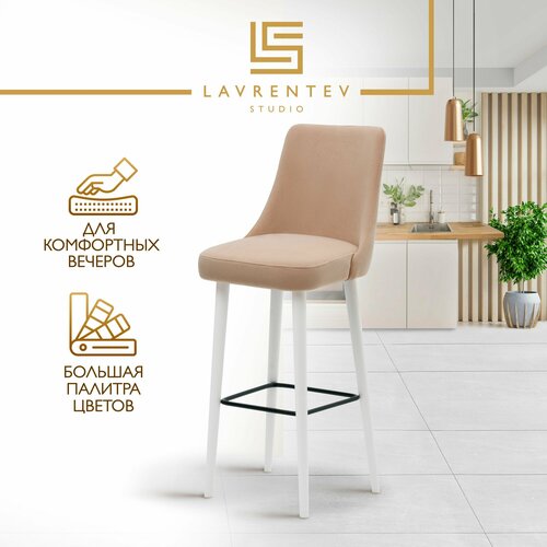 Барный стул 75 см Fusion Standart F01, на белых дубовых ножках, велюр цвет бежевый, Лаврентьев Студио: сравнение цен, характеристики, фото, актуальное наличие и цены.