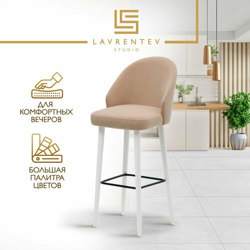 Барный стул 75 см Fusion Standart F03+, на белых дубовых ножках, велюр цвет бежевый, Лаврентьев Студио: сравнение цен, характеристики, фото, актуальное наличие и цены.