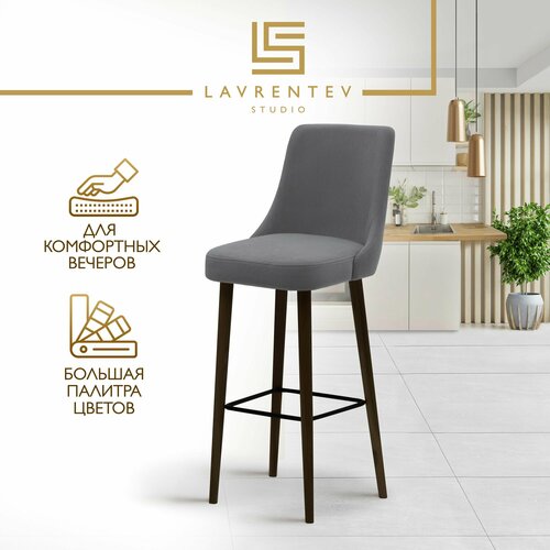 Барный стул для кухни высота 75 см Fusion Standart F01, на черных деревянных ножках, велюр цвет серый Lavrentev Studio: сравнение цен, характеристики, фото, актуальное наличие и цены.