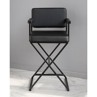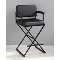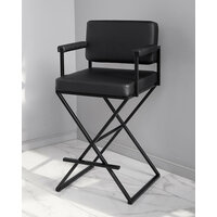 Режиссерский барный стул для визажиста или бровиста. Каркас выполнен из металла с порошковым окрашиванием в матовый черный цвет. Это стул не складной, в отличие от аналогов, поэтому его конструкция надежная и устойчивая. Обивка выполнена из искусственной кожи черного цвета. Мягкие сиденье, спинка и подлокотники позволят клиенту сидеть с комфортом даже длительное время. Габариты: Ширина: 55 см Глубина: 56 см Высота сиденья: 78 см