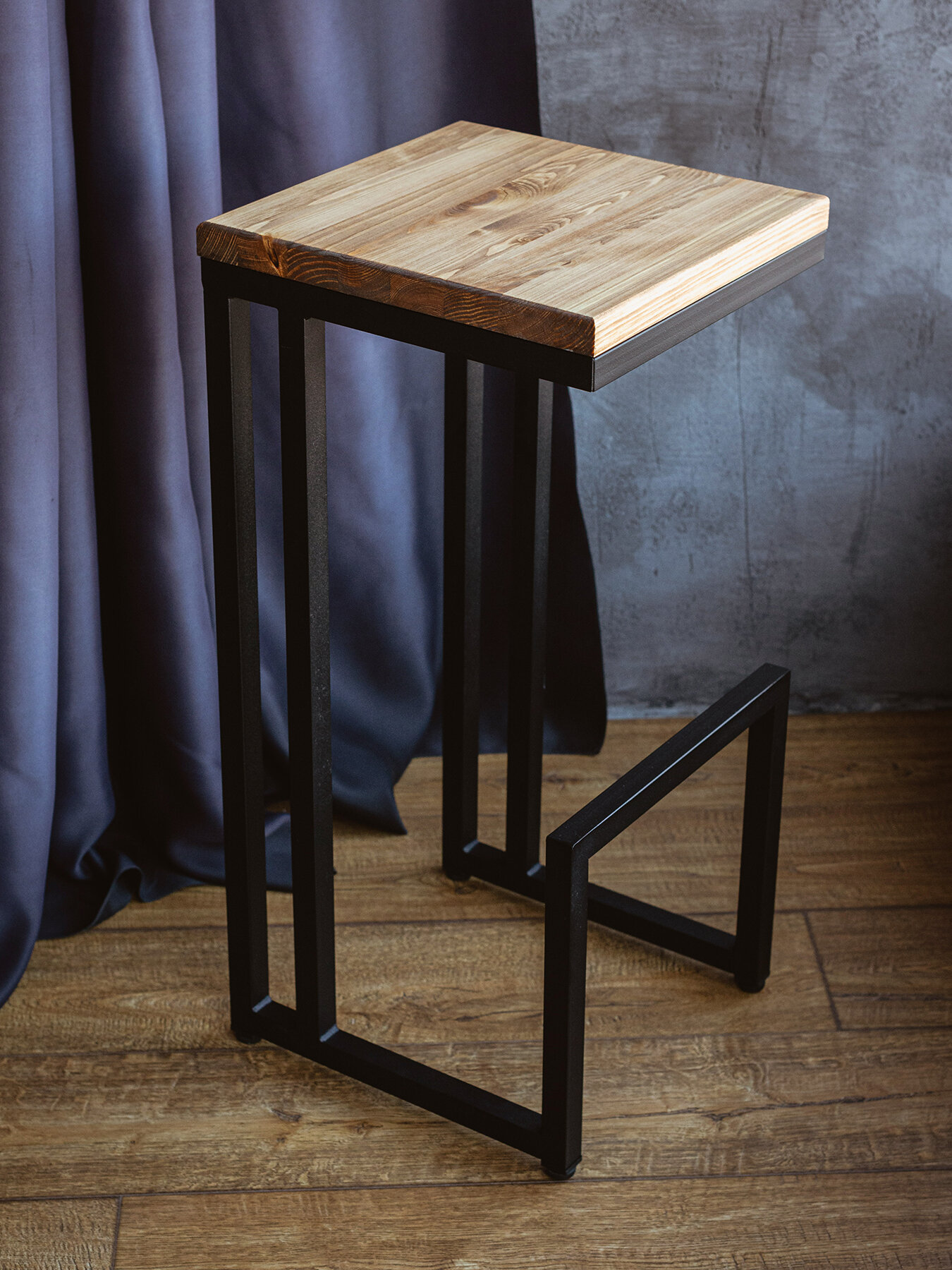 Купить Барный стул ilwi MBL-P-SL-С-1-M/1/3 для кухни высокий из металла с деревянным сиденьем толщиной 28 мм в стиле лофт, подарок на день рождения с доставкой по всей России.