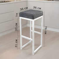 Квадратное сидение высокого стула без спинки выполнено из износостойкой мебельной ткани, что делает изделие долговечным в использовании. Ножки защищены заглушками, чтобы предотвратить появление царапин на полу.