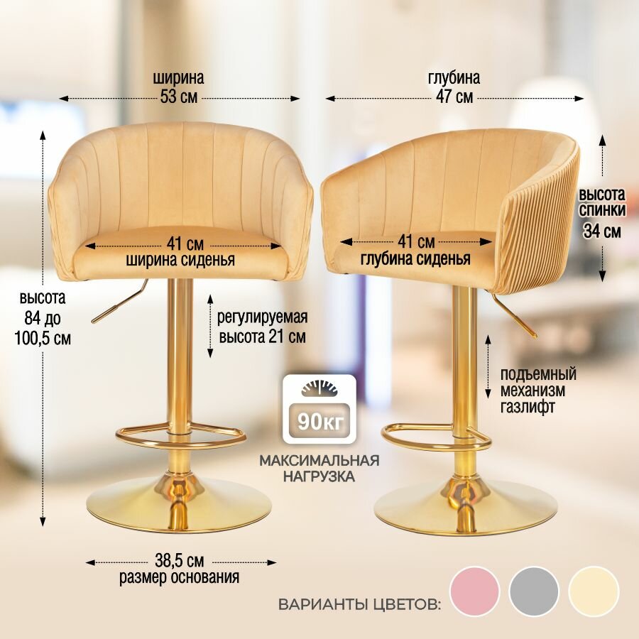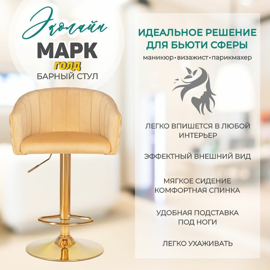 Барный стул мягкий с высокой спинкой Марк Голд песочного цвета 1 шт Эколайн: сравнение цен, характеристики, фото, актуальное наличие и цены.