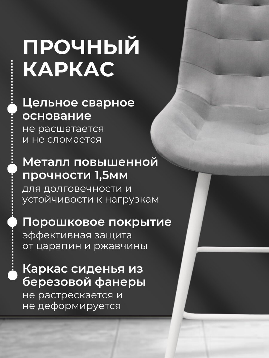 Полубарный стул оснащен поворотным механизмом на 360°, что обеспечивает максимальное удобство в использовании. Вы можете легко повернуться на сиденье, не отодвигая стул, что делает его идеальным выбором для кухонного острова, барной стойки или любого другого места в вашем доме.