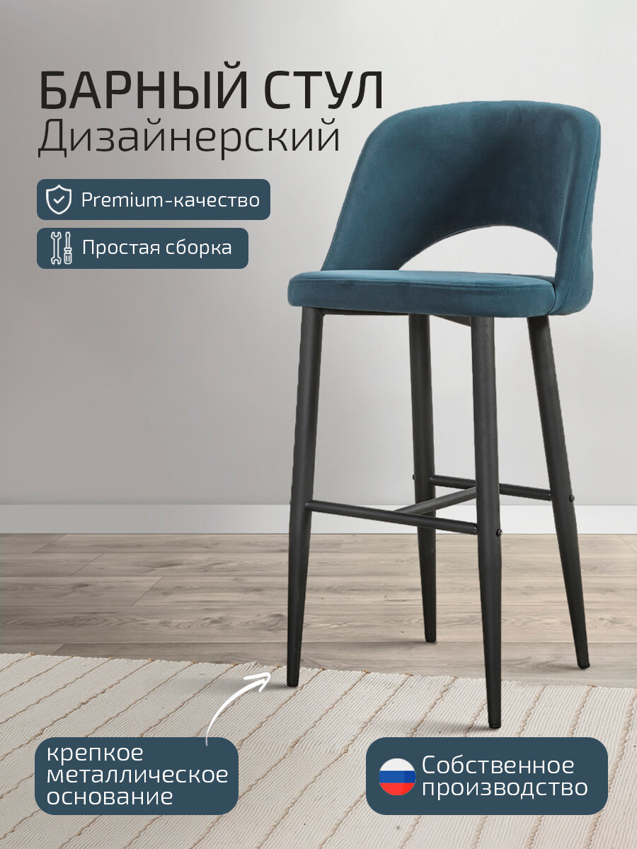 Барный стул со спинкой для кухни, барное кресло премиум Lars Diag blue Синий с черными ножками: сравнение цен, характеристики, фото, актуальное наличие и цены.