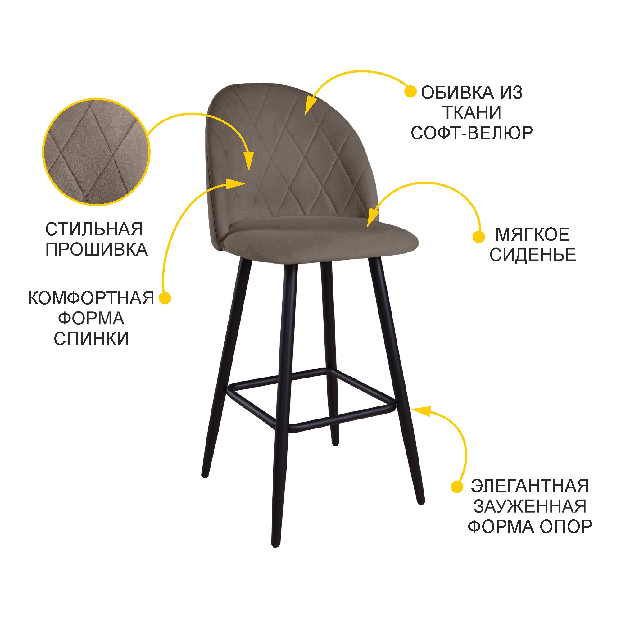 Барный стул со спинкой мягкий Лира 13 (02) Коричневый/Черный, 48х52х105 см: сравнение цен, характеристики, фото, актуальное наличие и цены.