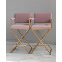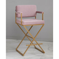 Режиссерский барный стул для визажиста или бровиста. Каркас выполнен из металла с порошковым окрашиванием в матовый черный цвет. Это стул не складной, в отличие от аналогов, поэтому его конструкция надежная и устойчивая. Обивка выполнена из велюра темно-розового цвета. Мягкие сиденье, спинка и подлокотники позволят клиенту сидеть с комфортом даже длительное время. Габариты: Ширина: 55 см Глубина: 56 см Высота сиденья: 78 см