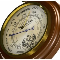 Барометр Погодникъ «Герб» в деревянном корпусе, престижная серия На дисплее изображение герба Российской Империи Измерение атмосферного давления, прогноз погоды на основании показаний шкалы Стиль написания значений – старорусский Цвет корпуса – махагони Цвет дисплея – светлый хаки Матовая полировка Настенное крепление Главная деталь анероидного барометра собрана вручную и прошла тщательную проверку на производстве RST Показания измерений атмосферного давления в мм. рт. ст Измерение атмосферного давления в пределах – 710-790 мм. рт. ст. Погрешность – +/-0,38 мм. рт. ст. Указание на оптимальное атмосферное давление Габариты – 170х130х25 мм. В комплект при покупке входит: Барометр Руководство на русском языке Гарантийный талон. Производитель – RST. Срок гарантии – 1 год со дня покупки.