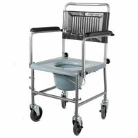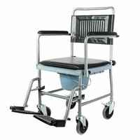 Удобное инвалидное кресло с санитарным оснащением Barry W2 для передвижения маломобильных пациентов с помощью сопровождающего. Оборудовано съемным пластиковым судном и может использоваться как кресло-туалет или для гигиенических процедур.