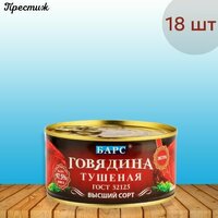 Барс Говядина тушеная, высший сорт, 325гр (набор 18 шт) - это уникальное мясо, которое будет отличным дополнением к вашему столу. Этот продукт производится из лучших частей говядины, которые тщательно отбираются и обрабатываются для получения максимального вкуса и качества.