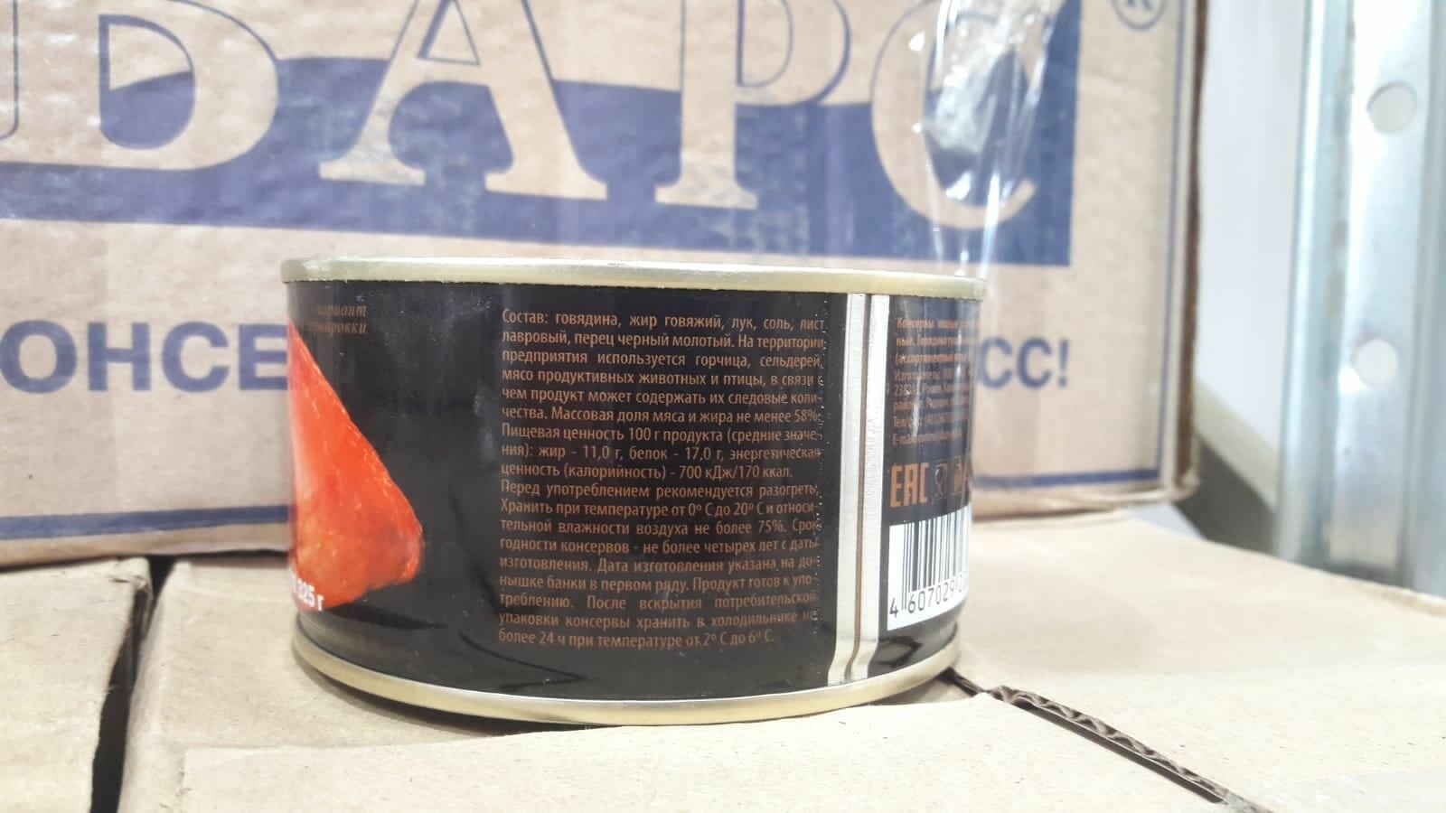 В состав этого продукта входят только натуральные ингредиенты, такие как говядина, жир говяжий, лук, соль, лавровый лист и черный перец. Все эти компоненты сочетаются друг с другом для создания уникального вкуса и аромата мяса.