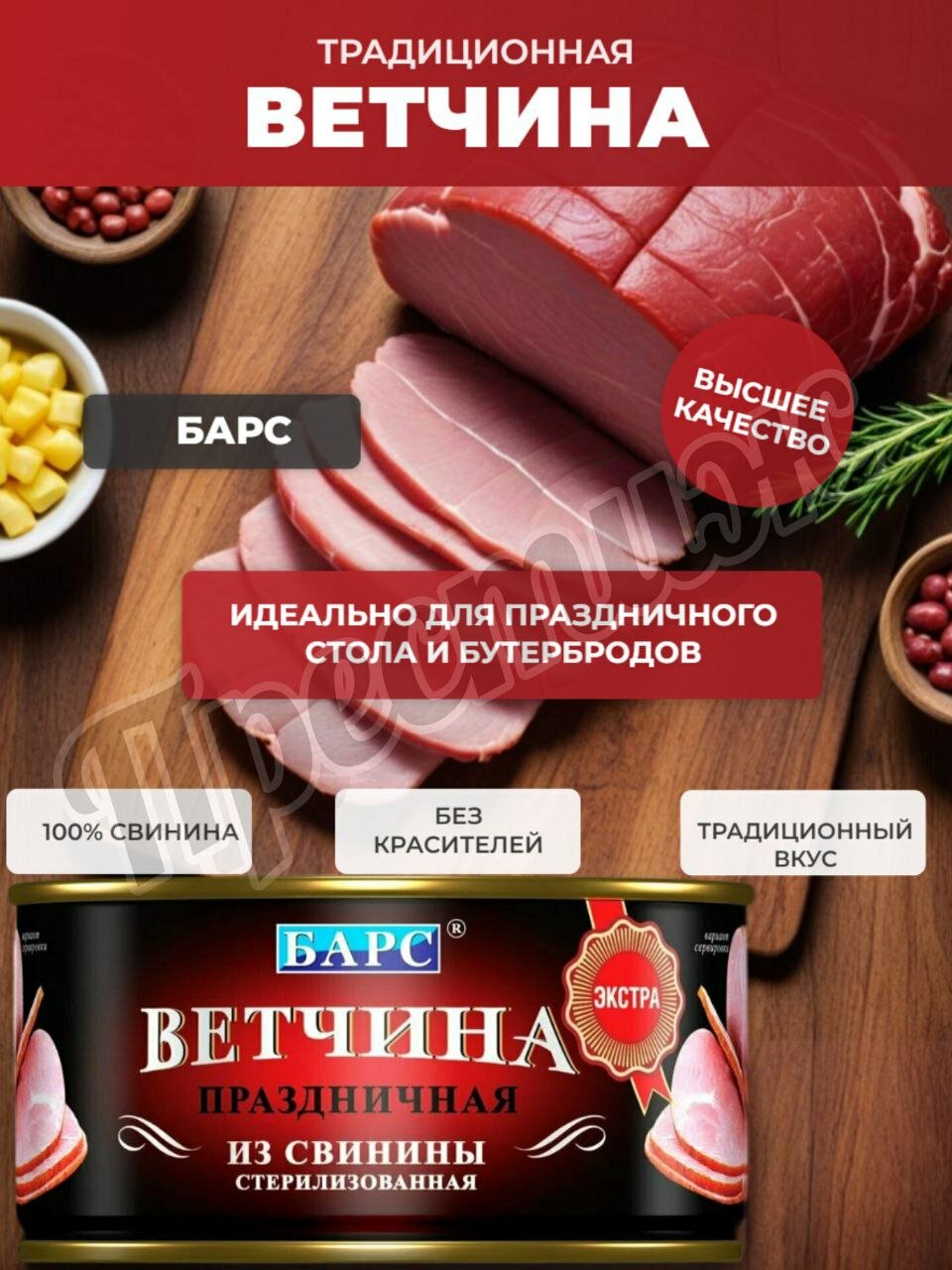 Купить Барс Ветчина праздничная из свинины 325гр. (набор из 6 шт) с доставкой по всей России. Барс Ветчина праздничная из свинины 325гр. (набор из 6 шт): сравнение цен, характеристики, фото, актуальное наличие и цены.