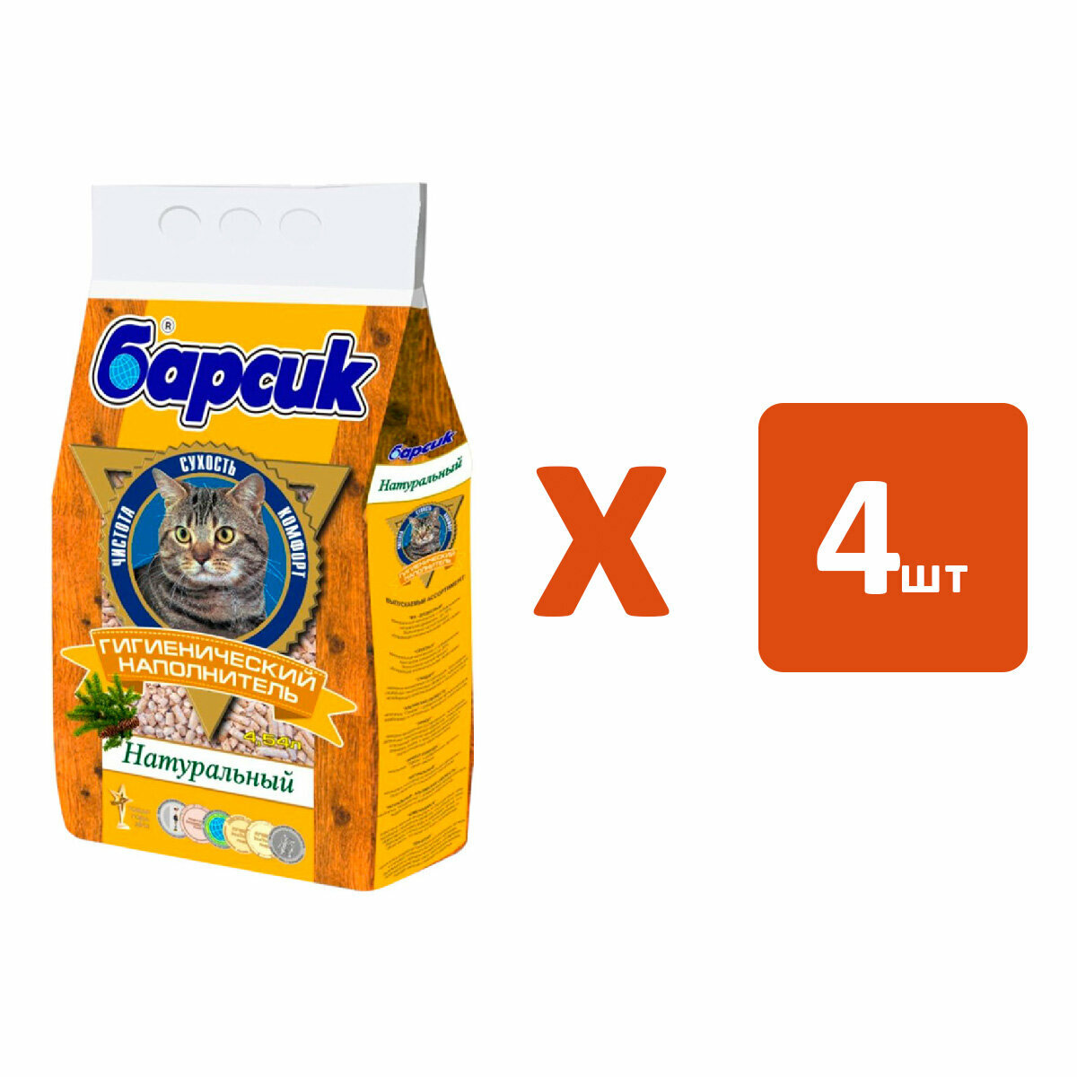 Барсик натуральный наполнитель древесный для туалета кошек (4,54 л х 4 шт)