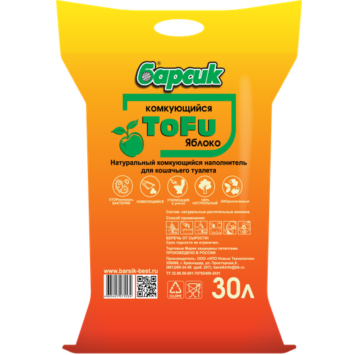 Барсик ToFu комкующийся наполнитель для кошачьего туалета, с ароматом Яблоко — 30 л: сравнение цен, характеристики, фото, актуальное наличие и цены.