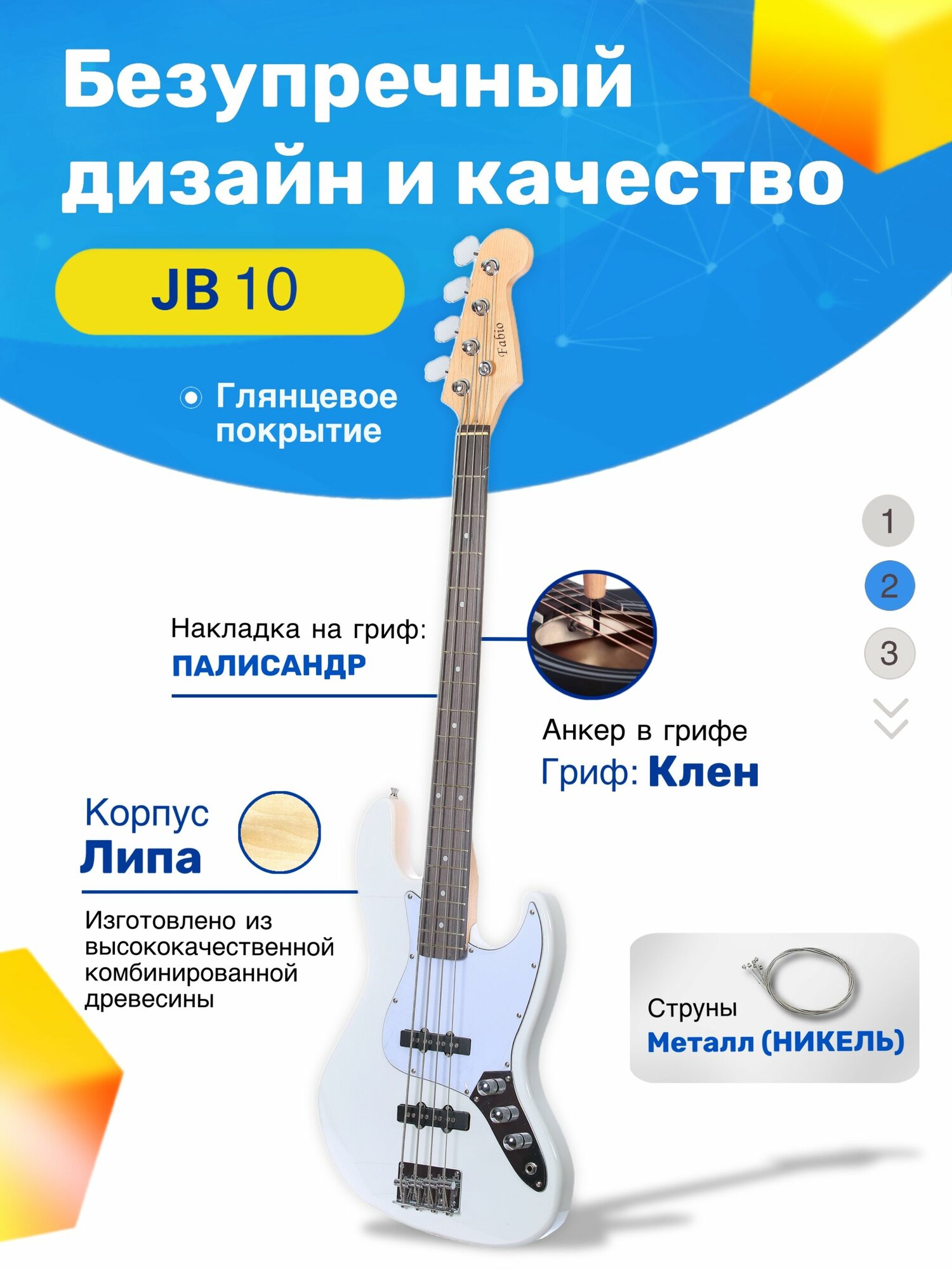Бас-гитара 39″ Белая Jazz Bass J-J Fabio JB-10 WH: сравнение цен, характеристики, фото, актуальное наличие и цены.