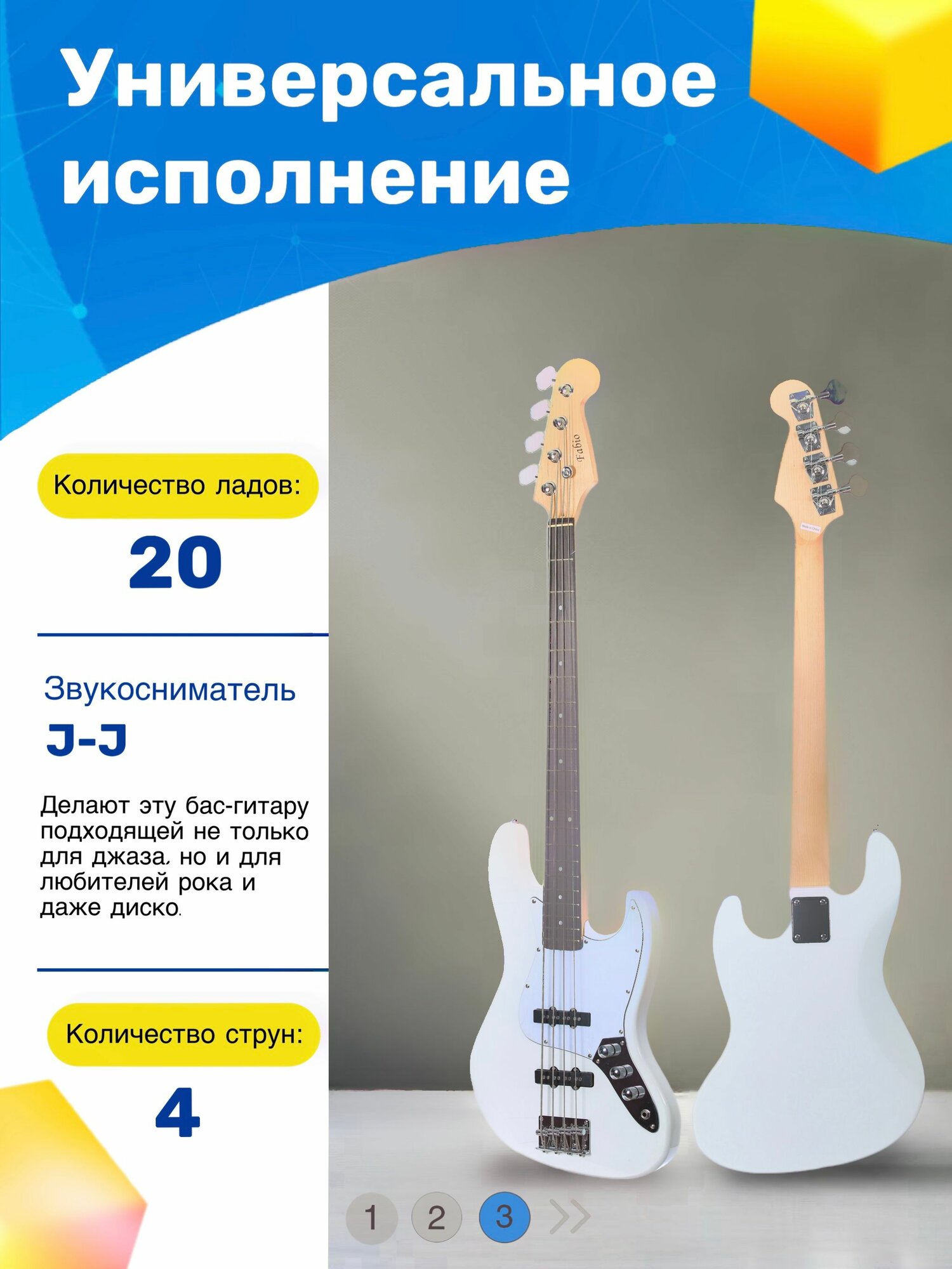 Купить Бас-гитара 39″ Белая Jazz Bass J-J Fabio JB-10 WH с доставкой по всей России.