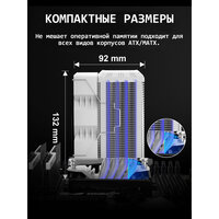 Мощный воздушный поток в 48,8 CFM и максимальная скорость вращения 2500 об/мин обеспечивают отличное охлаждение даже в самых горячих условиях, при этом уровень шума не превышает 32,5 дБ, что позволяет вам наслаждаться комфортной работой без лишнего звукового фона. Диаметр вентилятора составляет 92 мм, что идеально подходит для большинства стандартных корпусов. Система подключения через 4-пин PWM разъем позволяет регулировать скорость вращения и оптимизировать охлаждение в зависимости от нагрузки на процессор, гарантируя эффективность и снижение энергозатрат.