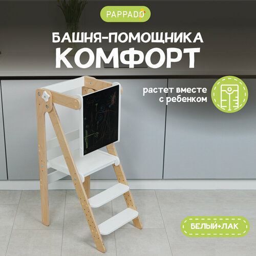 Башня помощника Монтессори «КОМФОРТ» + доска-ограничитель «Pappado», цвет белый + лак: сравнение цен, характеристики, фото, актуальное наличие и цены.