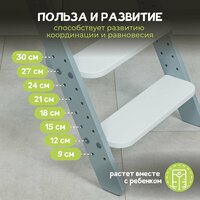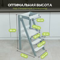 Стульчик-подставка содержит детские ступеньки на высоте: 20.5, 23.5, 26.5 см.