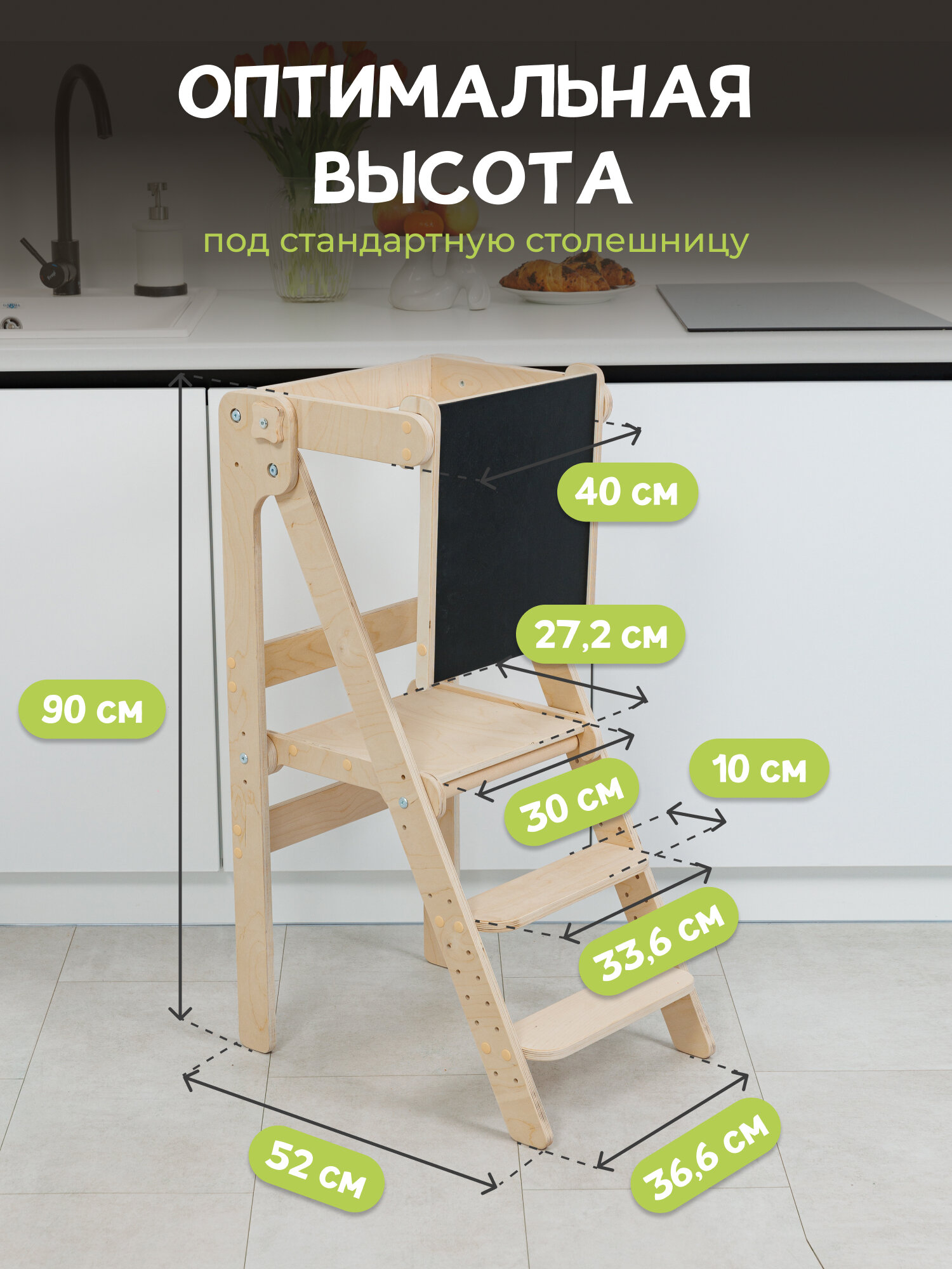 ✔ Безопасность — прочная конструкция с бортиками ✔ Экологичность — нетоксичные материалы и краски ✔ Компактность — складывается за секунды ✔ Универсальность — для кухни, ванной, спальни, творчества ✔ Регулируемая высота — растет вместе с ребенком