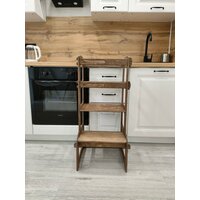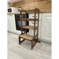 Занимаемся взрослыми делами вместе с родителями. Сами чистим зубы, моем руки и еще тысячу дел, до которых раньше не дотягивались. Привыкаем к высоте, развиваем крупную моторику. Съемные боковые ограничители защитят от падения, а дополнительные упоры снизу добавляют устойчивости. Теперь легко добраться до нужных предметов. Является частью воспитания по методу Монтессори. Ее могут использовать и взрослые для домашних дел, чтобы достать что-то из шкафа или заменить лампочку. Собственное производство. Изготовлена из березовой фанеры. Двойная шлифовка, на шлифовальном станке и ручная. Все углы закруглены. Простая и быстрая сборка. Покрыта маслом цвета "орех". Размер верхней площадки 38*27 см. Размер нижней площадки 38*20 см. Высота площадки 46см. Быстросъемные защитные перекладины.