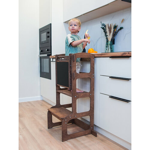 Занимаемся взрослыми делами вместе с родителями. Сами чистим зубы, моем руки и еще тысячу дел, до которых раньше не дотягивались. Привыкаем к высоте, развиваем крупную моторику. Съемные боковые ограничители защитят от падения, а дополнительные упоры снизу добавляют устойчивости. Теперь легко добраться до нужных предметов. Является частью воспитания по методу Монтессори. Ее могут использовать и взрослые для домашних дел, чтобы достать что-то из шкафа или заменить лампочку.