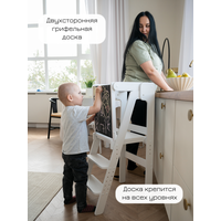 Конструкция башни помощника разработана по системе Монтессори, что позволяет ребенку самостоятельно развиваться, а также служит надежной стремянкой и стульчиком для кормления. Высота стульчика регулируется, что позволяет использовать его с высотой стандартных кухонных столешниц, компьютерных стульев и кухонных стульев.