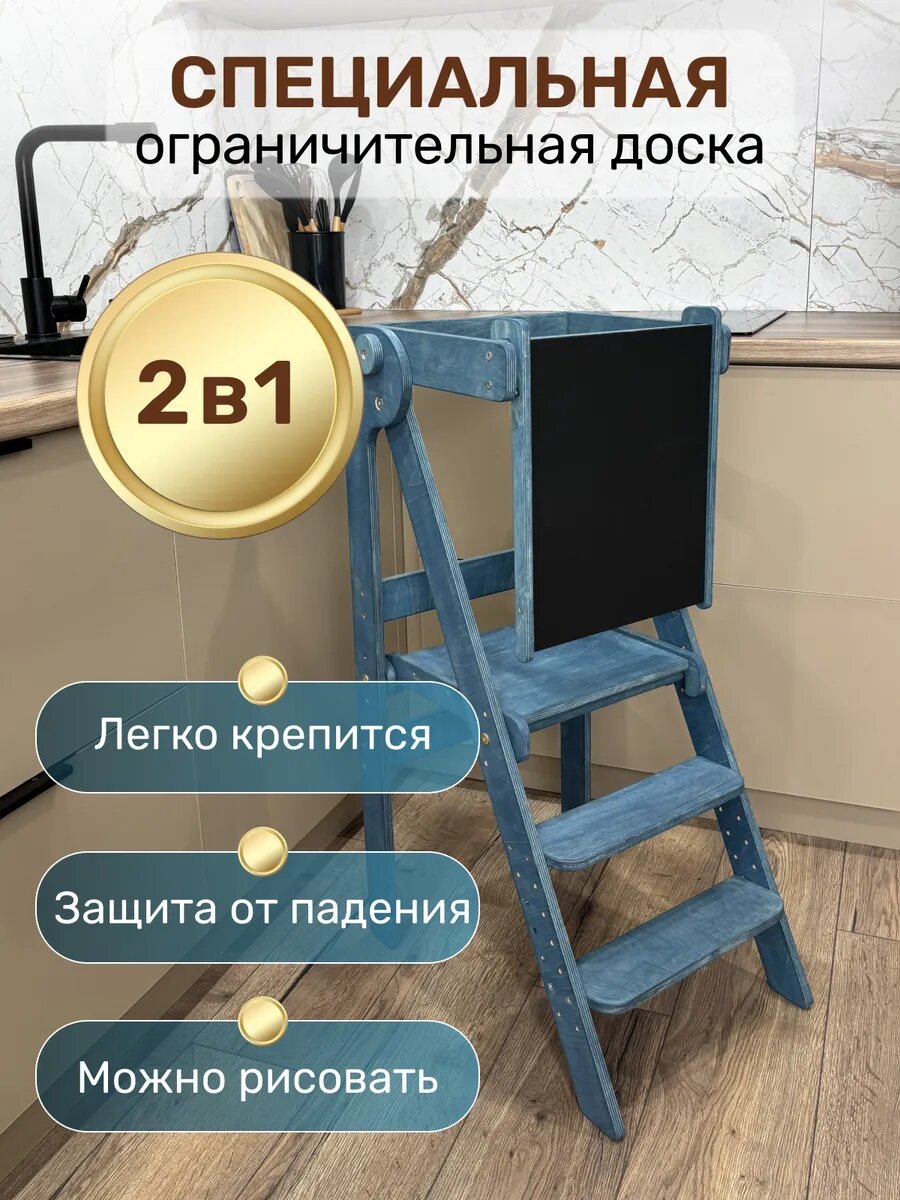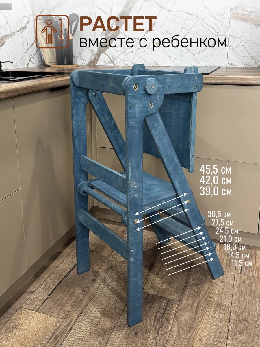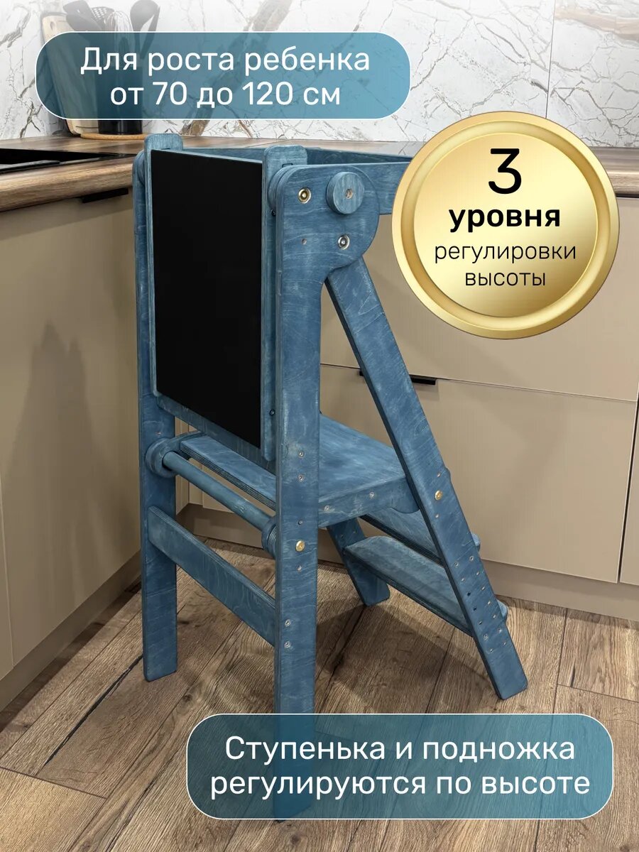 Складная компактная башня помощника Монтессори, для детей, выполнена из натурального дерева высшего сорта. Устойчивая конструкция, которая гладко отшлифована, покрыта маслом. Грифельная доска для рисования ( идет в комплекте ) станет отличным местом для творчества, также прослужит защитой от падения. Башня регулируется по высоте под рост ребенка. Простая удобная сборка, где используется качественная фурнитура. Её можно использовать как стул, а так же стремянку для взрослого человека. Развивает самостоятельность ребенка. Кнструкция крепкая, удобная и безопасная, подходит для любого возраста вашего ребенка.