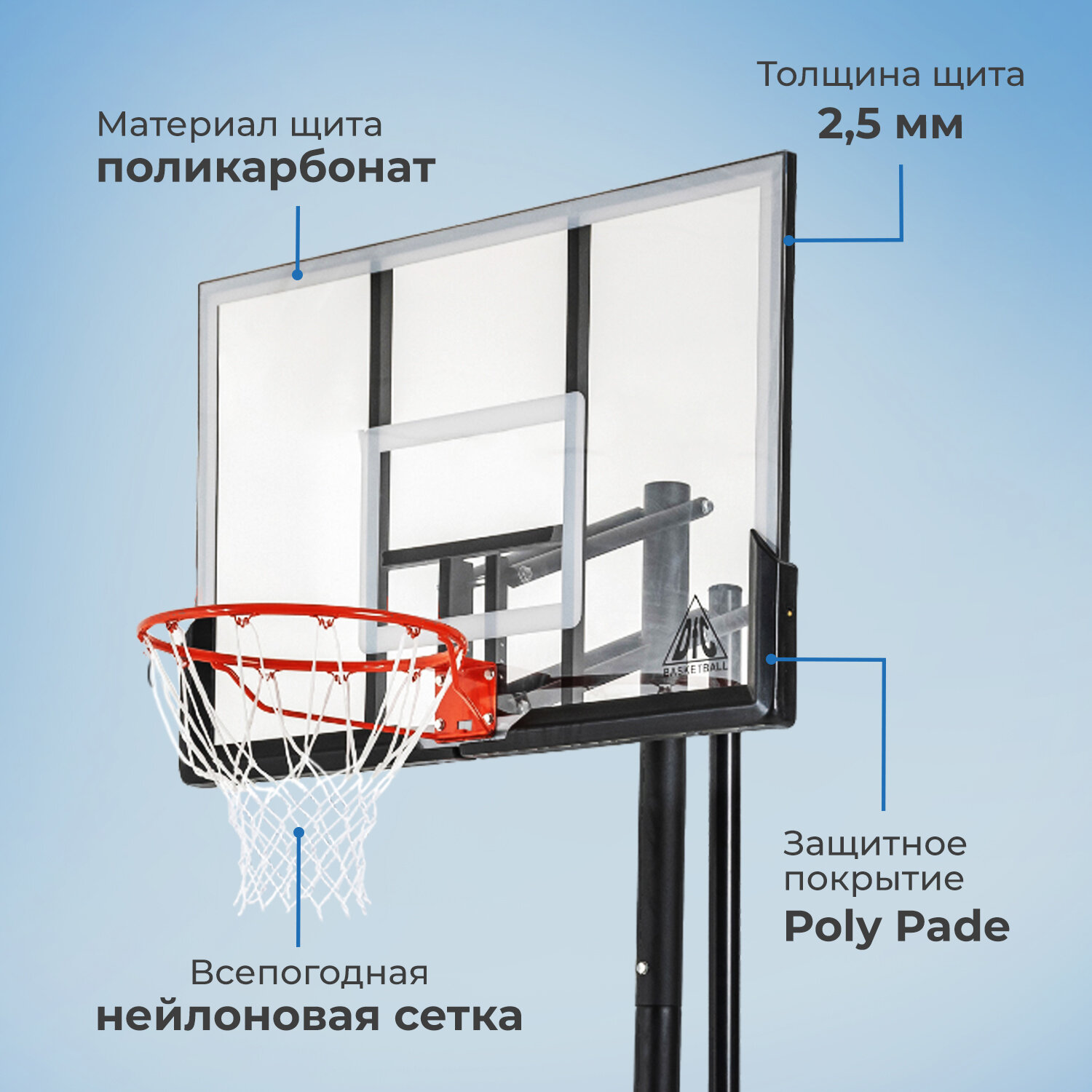 Портативная конструкция позволяет вам создать собственную баскетбольную площадку так, как надо именно вам.