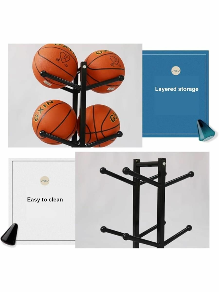 стандарт: Название: Стеллаж для хранения баскетбольных мячей Материал: железо Цвет: черный Вместимость: 4 слоя: 8 шариков; 5 слоев: 10 шариков