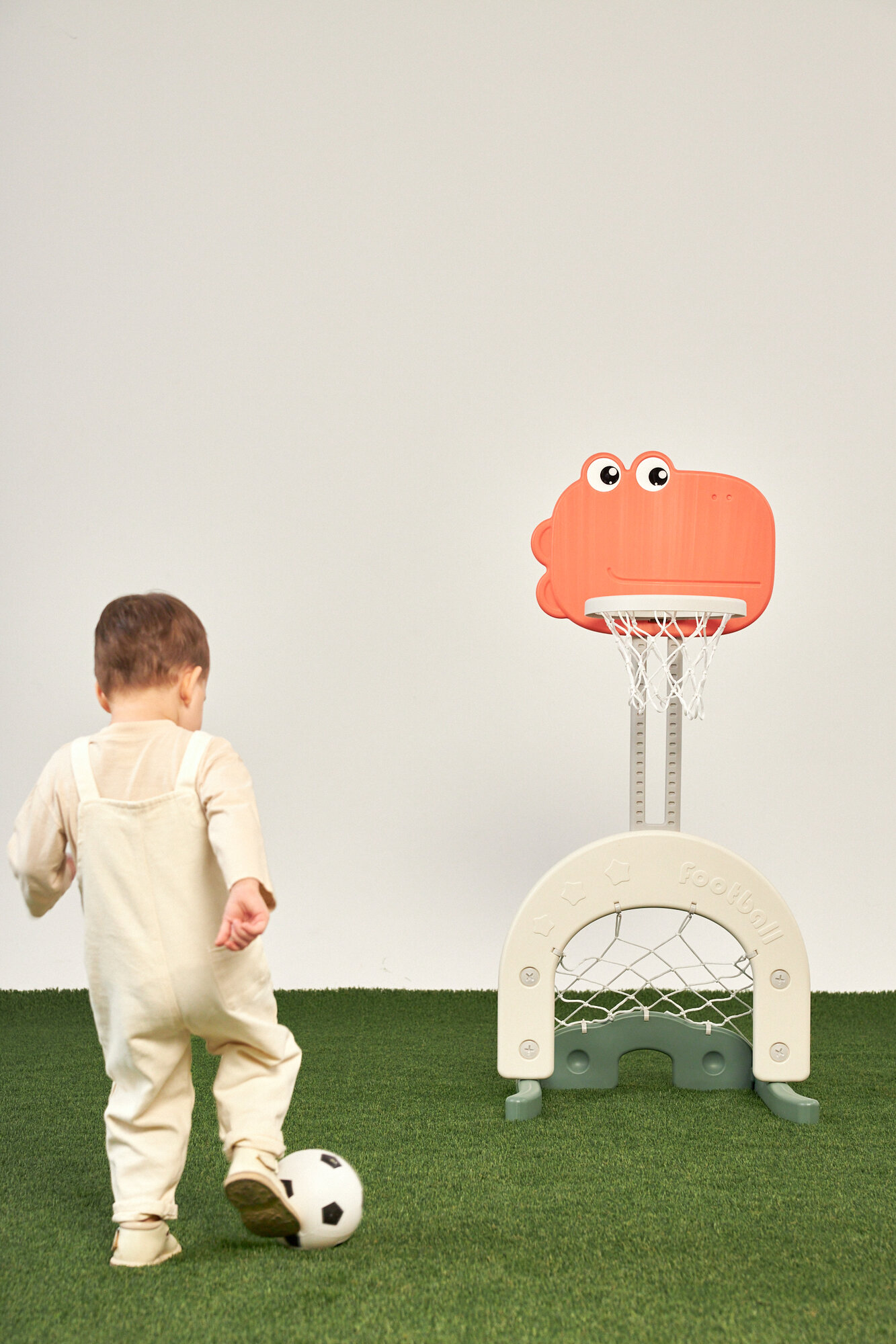 Детская баскетбольная стойка Unix Kids Dino – это целый стадион у вас дома: футбол, хоккей, баскетбол! Как и другие детские товары марки Unix Kids, комплекс изготовлен из пищевого пластика 4-го класса — согласно классификации ГОСТ, гипоаллергенного и абсолютно безвредного даже для самых маленьких пользователей. Также этот материал не боится UV-лучей, и его можно использовать на улице. Баскетбольная стойка имеет плавную регулировку по высоте в зависимости от роста ребенка. Для обеспечения устойчивости конструкции основание баскетбольной стойки имеет водоналивное отверстие. В нижней части стойки расположены футбольные и хоккейные ворота. В комплекте со стойкой идут футбольный и баскетбольный мячи, а также клюшка и маленький мяч-шайба. Стильный дизайн и спокойная цветовая гамма детского спортивного комплекса позволяют прекрасно вписаться в любой интерьер. Спорткомплекс отлично сочетается с другими детскими товарами марки Unix Kids. Желаем вам новых побед! Размер баскетбольной стойки 55 х 52 х 108 см. Пищевой пластик: безопасно для детей 0+. UV защита: подходит для улицы. Легкая сборка: до 15 минут. Возраст: от 2 лет. Стандарт: EN71. ASTM963.