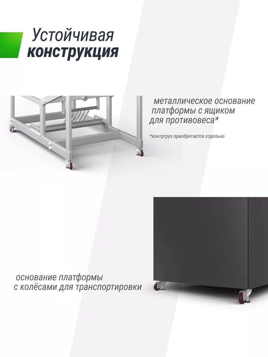 Крайне не рекомендуется выполнять заброс мяча, ухватившись за стойку или за кольцо корзины, так как она не предназначена для подобного использования. Стойка UNIX Line B-Stand-PC оснащена колесами, которые блокируются, когда конструкция находится в рабочем состоянии на площадке. Для устойчивости баскетбольной стойки на раму должен быть размещен противовес 350 кг (приобретается отдельно).