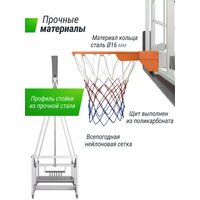 Такие высококачественные материалы уличной баскетбольной стойки 305 см как нейлоновая сетка, прочный щит из поликарбоната толщиной 4 мм с защитой от удара головой из ПВХ, стальные трубы стойки и металлическое основание платформы гарантируют долгий срок службы, устойчивость к погодным условиям и главное - безопасность.
