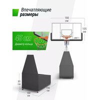 Специально разработанная устойчивая конструкция обеспечивает стабильность и безопасность во время игры, позволяя вам наслаждаться каждым забитым мячом. Олимпийский стандарт кольца 45 см позволит почувствовать себя настоящим профи в игре. Рабочая высота кольца 305 см позволяет использовать стойку как для взрослых, так и для детей. Высота конструкции в сложенном виде 120 см, ее можно полностью сложить для хранения и перемещения.