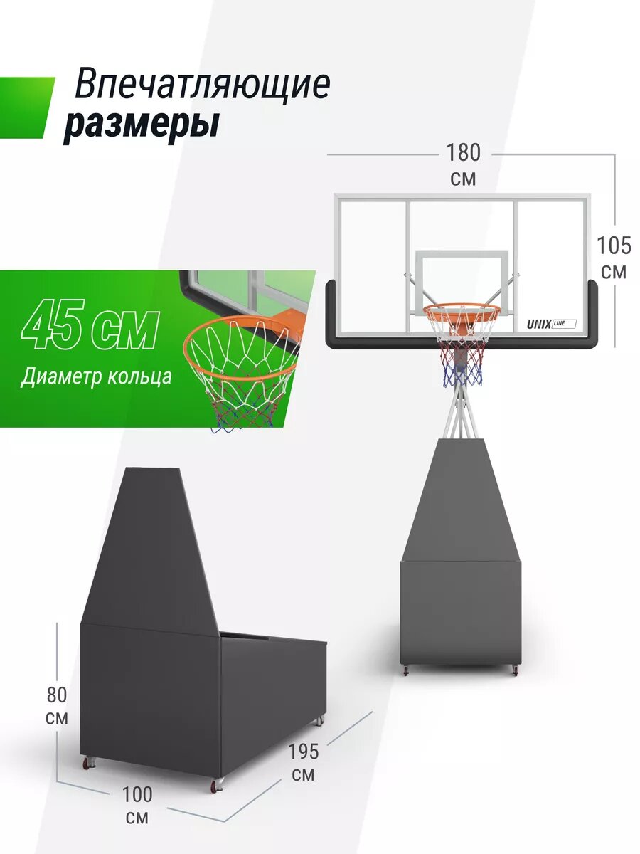 Баскетбольная стойка UNIX Line B-Stand-PC - идеальное решение для всех поклонников баскетбола, от начинающих игроков до опытных профессионалов. Сочетание прочности, надежности и функциональности делает эту стойку незаменимым спортивным аксессуаром для вашего двора или площадки.