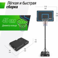 Специально разработанная устойчивая конструкция обеспечивает стабильность и безопасность во время игры, позволяя вам наслаждаться каждым забитым мячом. Олимпийский стандарт кольца 45 см позволит почувствовать себя настоящим профи в игре. Регулируемая высота щита от 1.35 до 3.05 м позволяет настраивать кольцо со стойкой под свой рост и профессионализм, подойдет для взрослых и детей.